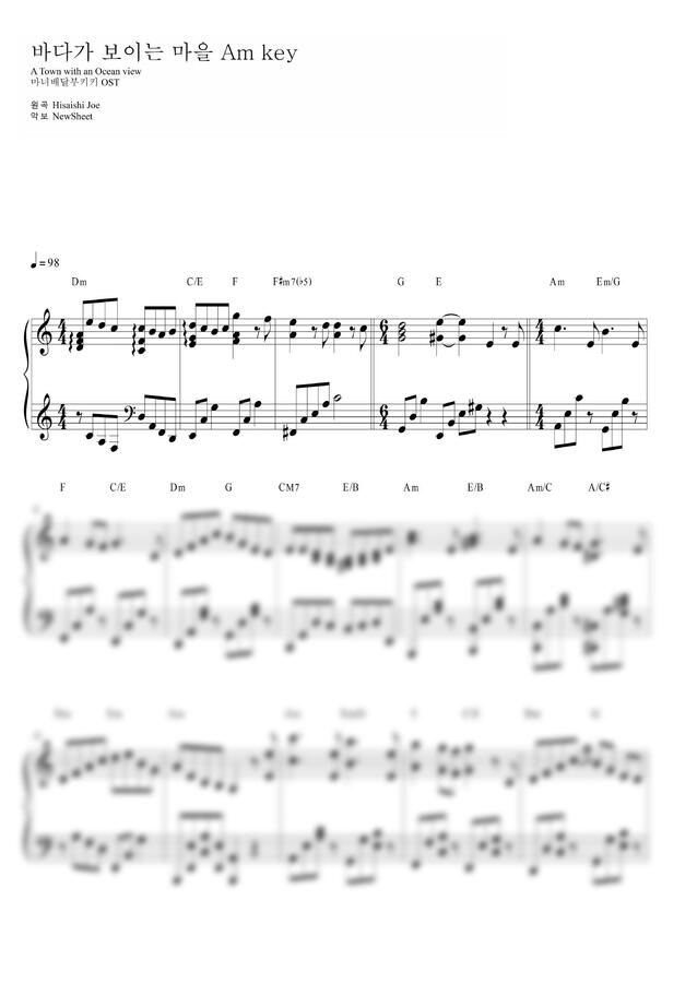 마녀 배달부 키키 OST - 海の見える街 (바다가 보이는 마을) (쉬운 키, 풀버전) by NewSheet