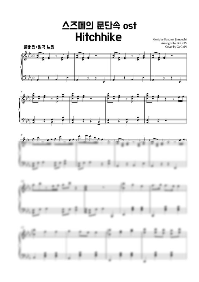 스즈메의 문단속 OST - すずめ (참새) 풀버전+원곡 느낌 악보 :