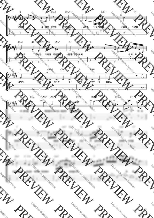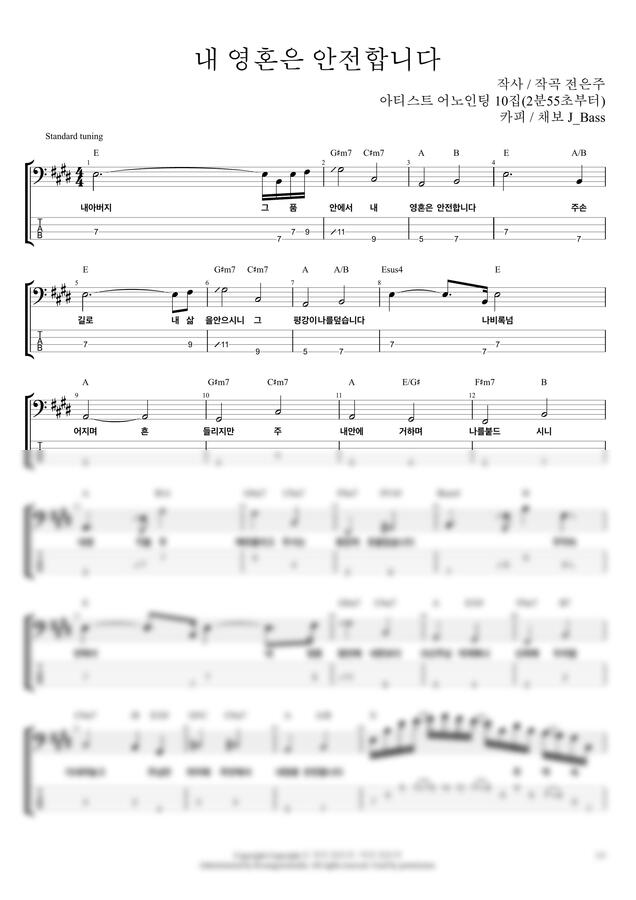 어노인팅의 "내 영혼은 안전합니다" 찬양의 베이스기타 악보입니다.