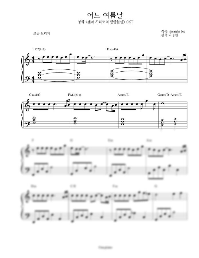 센과 치히로의 행방불명 OST - あの夏へ (어느 여름날) (쉬운악보) by 나건반