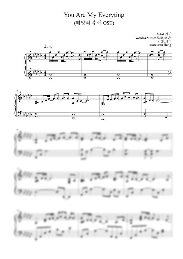 거미 - You Are My Everyting(태양의 후예OST) (원곡Gb,쉬운G악보) by 홍소라
