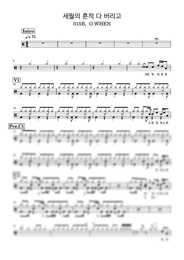 015B, O.WHEN - 세월의_흔적_다_버리고 드럼악보입니다.