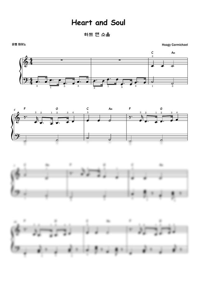 통통 튀는 익숙한 멜로디~~ 하트 앤 소울~~ 쉬운 악보로 준비해보았습니다.