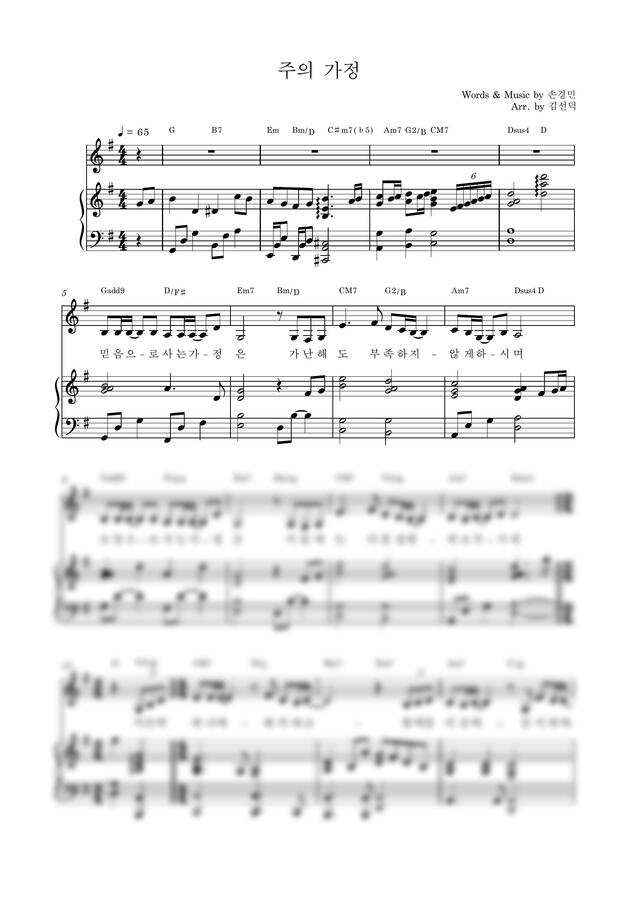 손경민님의 주의가정 G key 피아노반주 악보입니다.