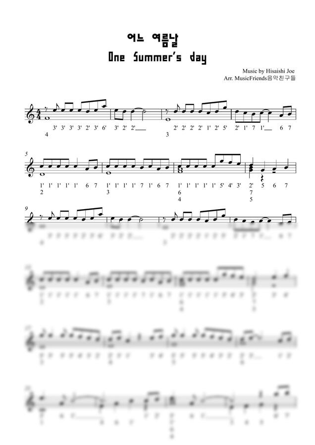 센과 치히로의 행방불명 OST - あの夏へ (어느 여름날) (17키 칼림바 악보) by Arr.MusicFriends 음악친구들
