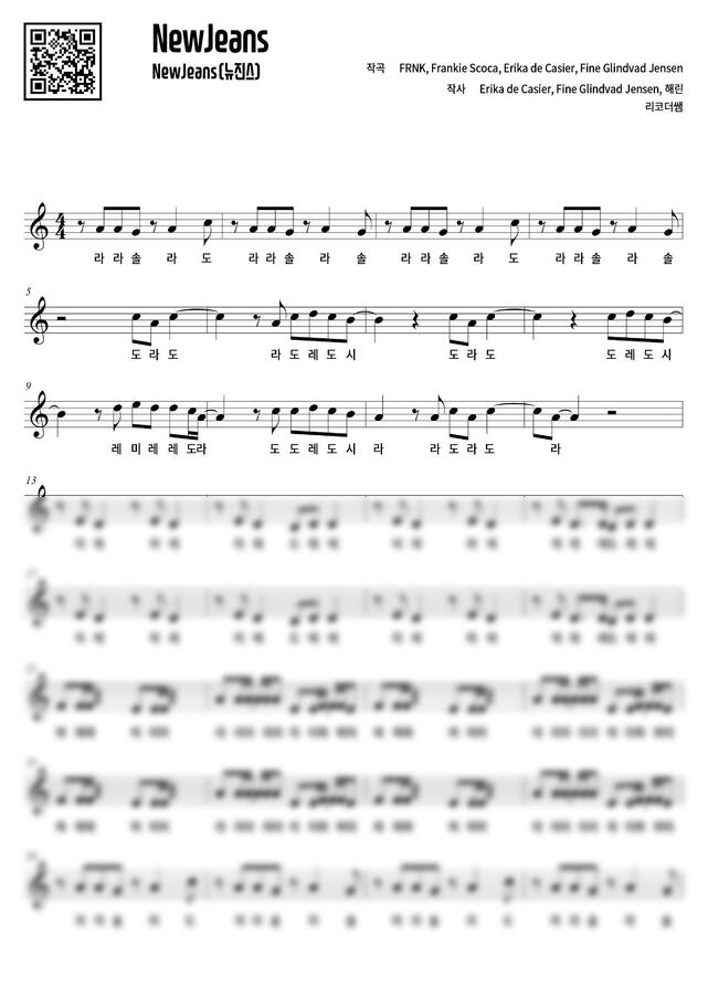 NewJeans (뉴진스) - New Jeans (리코더 계이름 악보) by 리코더쌤