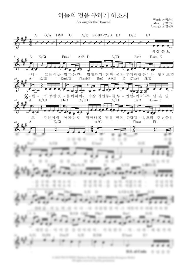 마커스워십 - 하늘의 것을 구하게 하소서 A Key (남자) Seeking for the Heaven’s (보컬3부/피아노) by 임선호/권미성