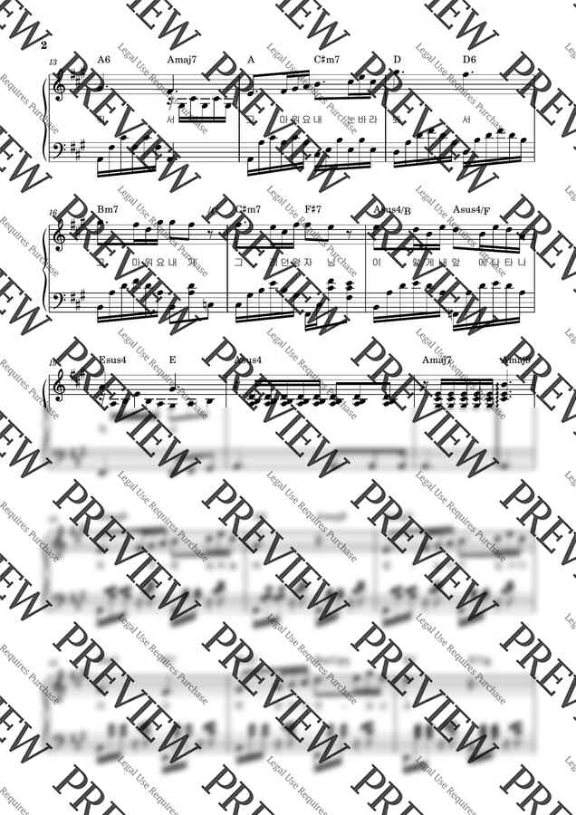 📢양손 연주용 AMajor (샾 3개)악보입니다.