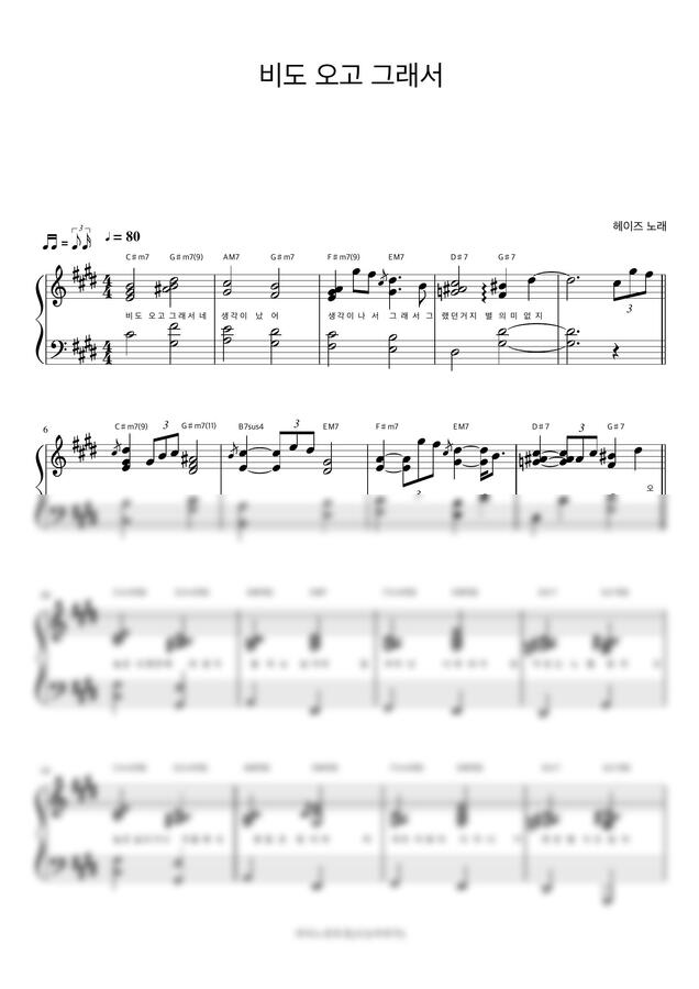 헤이즈 (Heize) - 비도 오고 그래서 (Feat. 신용재) (반주악보) by 피아노정류장
