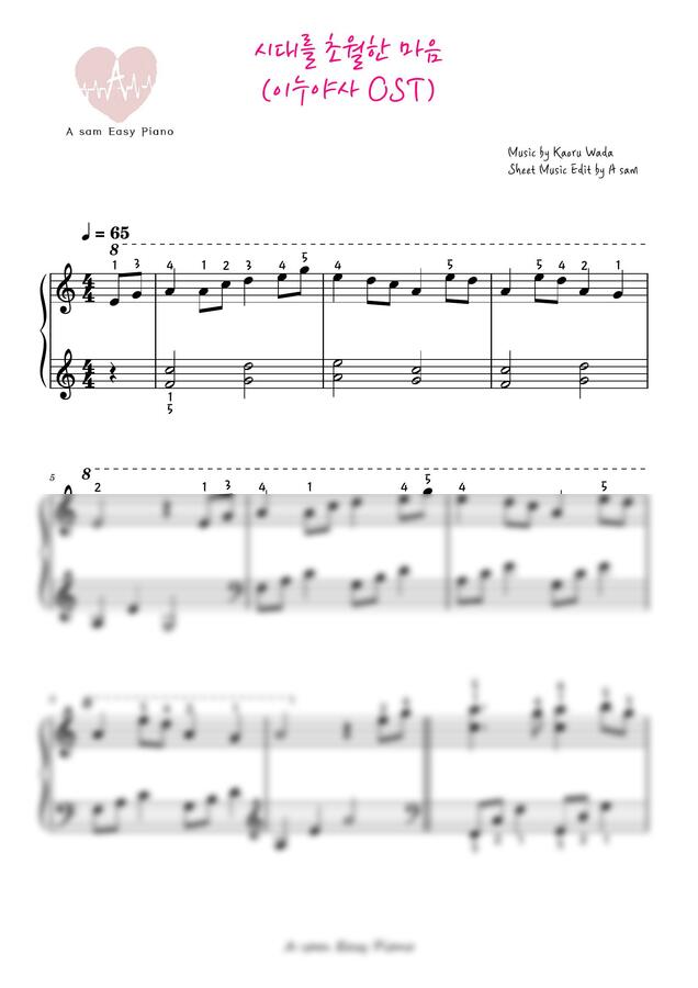 에이쌤의 이지피아노 악보는 반복 없이 되도록 1절 위주의 편곡으로 진행하며, 직접 만든 MR과 함께 풍성한 사운드로 연주가 가능합니다.