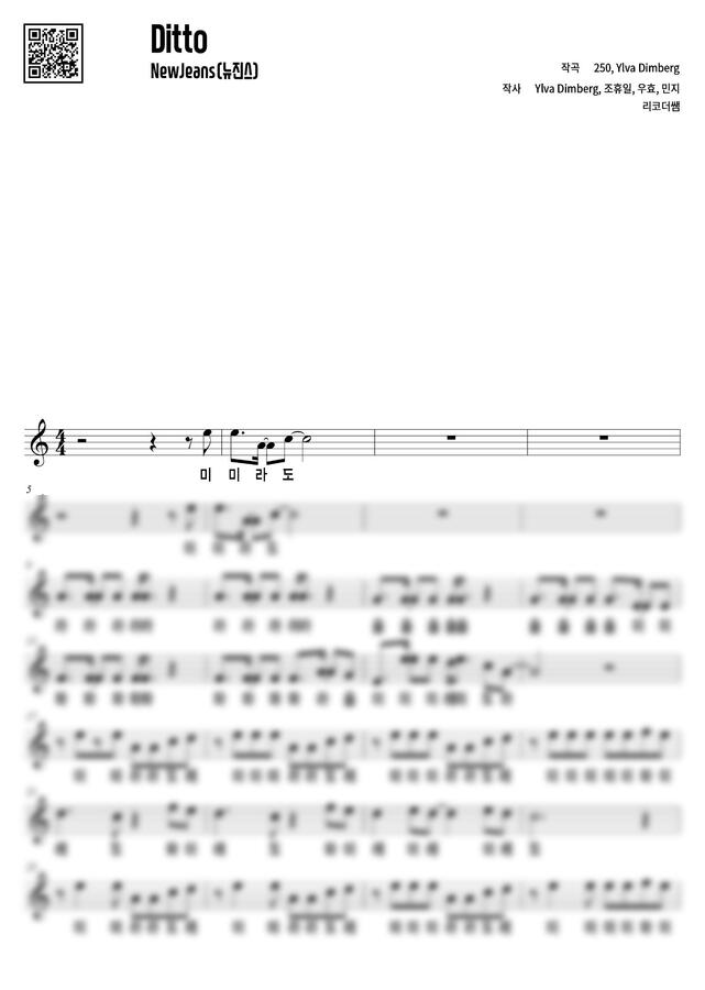 NewJeans (뉴진스) - Ditto (리코더 계이름 악보) by 리코더쌤