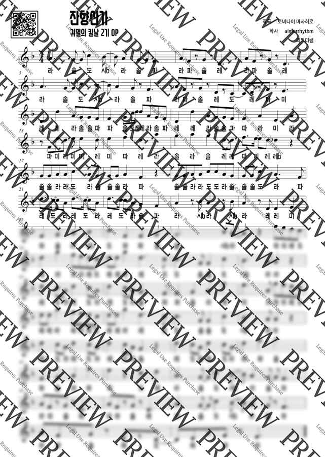 귀멸의 칼날 OST - 残響散歌 (잔향산가) (리코더 계이름 악보) by 리코더쌤0