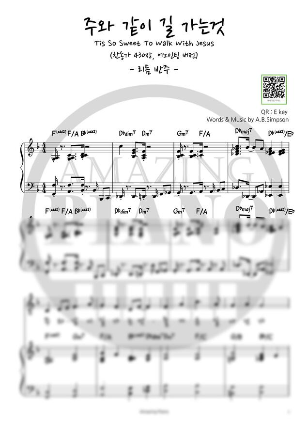 어노인팅버전 - 주와 같이 길 가는 것 (F key, 반주) by 어메이징피아노