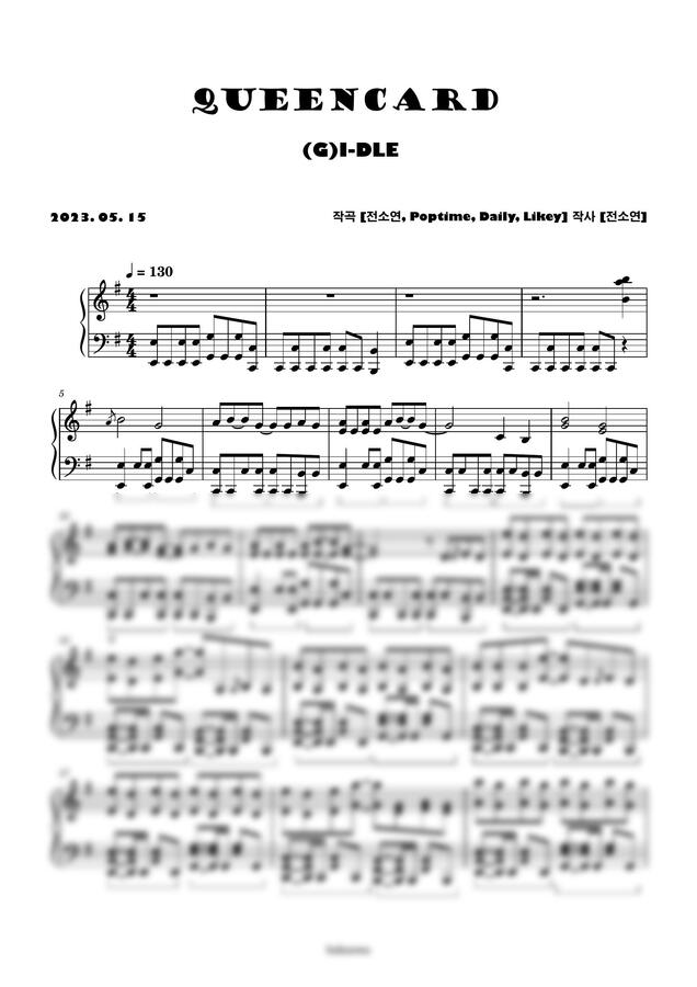 (여자)아이들 - Queencard (퀸카) (어려운 악보/원키) by Boknowa보노아