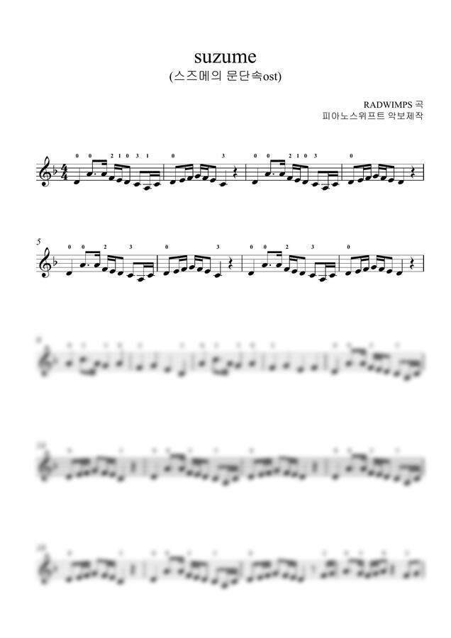 스즈메의문단속ost - suzume(바이올린)손가락번호 (초급 악보) by 피아노스위프트
