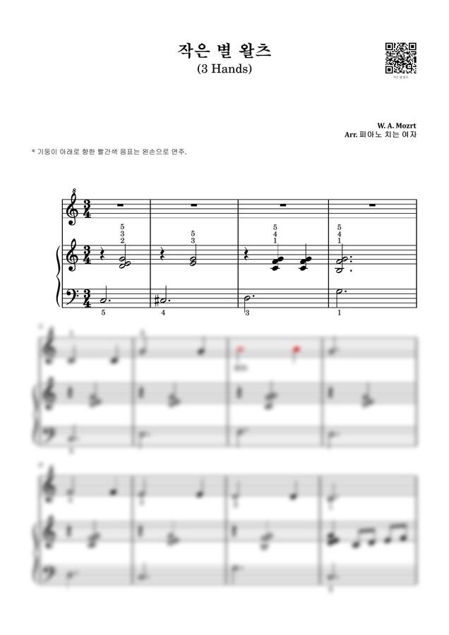 작은 별 왈츠 (3 Hands, 기초 악보) by 피아노 치는 여자 1p 미리보기