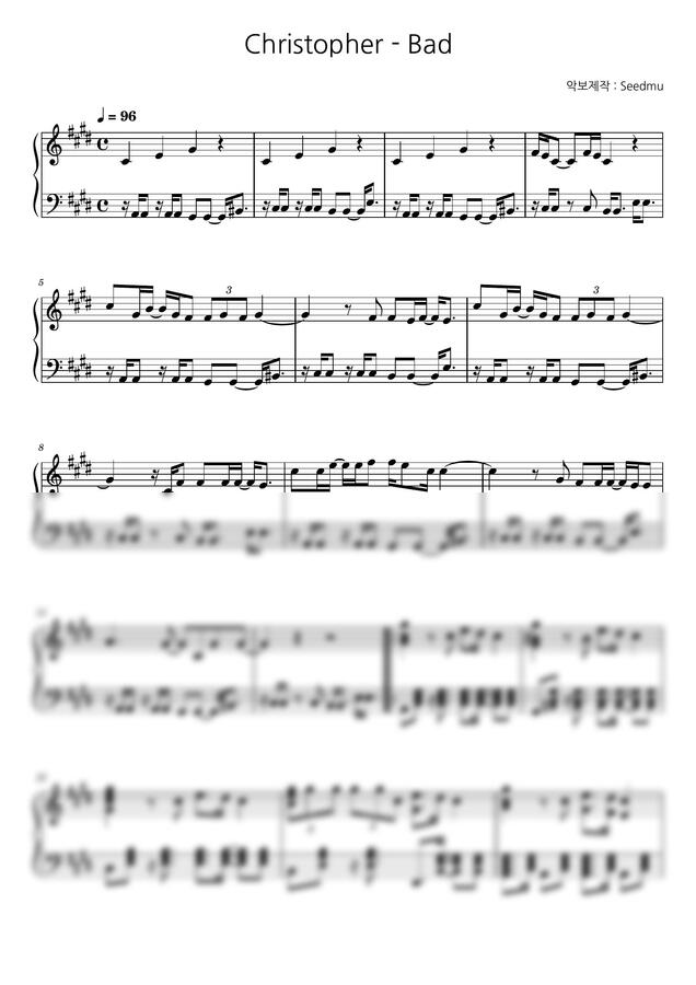 Christopher - Bad 피아노악보입니당~!