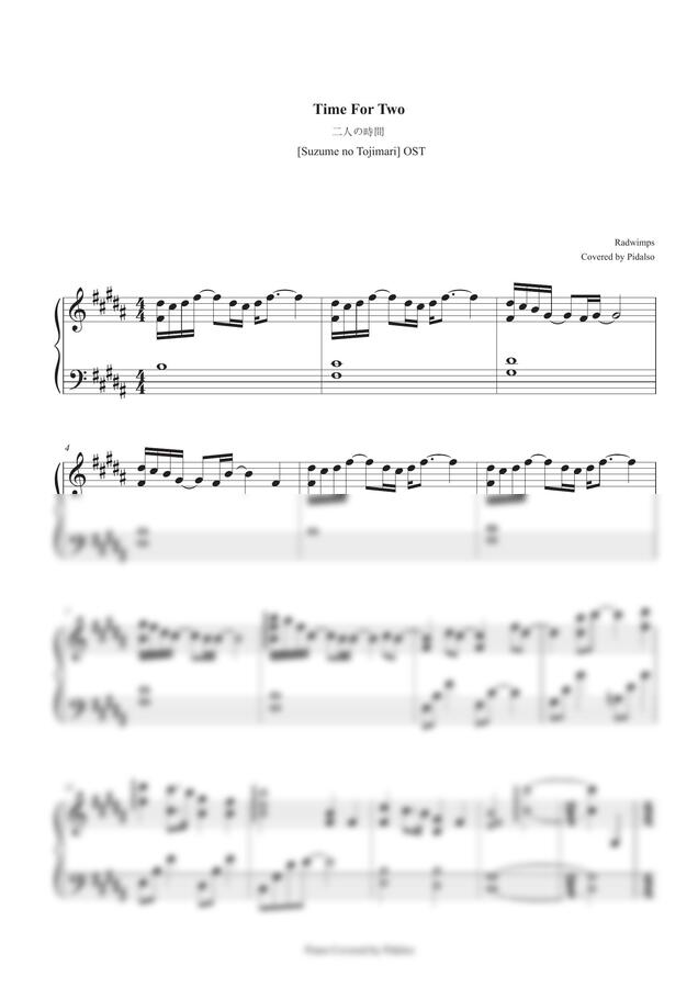 손 가는대로 연주한 후에 채보하는 방식으로 작업 했습니다. 커버 버전과 동일한 느낌을 원하시는 분들이 계셔서, 최대한 업로드 한 버전을 살리되 수정이 필요하다고 느껴지는 부분은 살짝 정리했습니다. (미세한 화성정리, 악보로 연주하기 수월하도록 쉬는 구간의 박자 조절 등 크게 느껴지지 않을 정도의 수정입니다.)