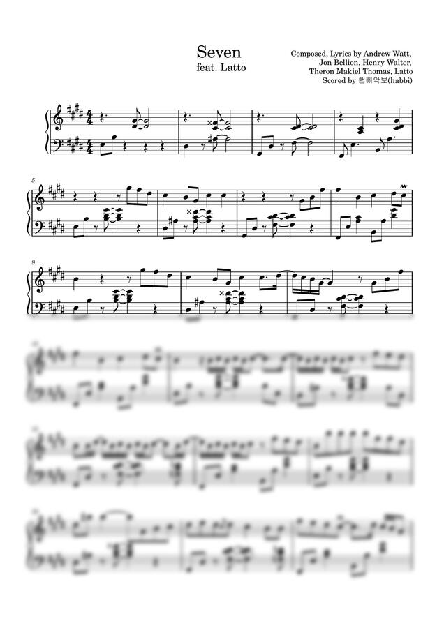 방탄소년단 정국의 신곡, seven 원곡버전의 악보입니다.
