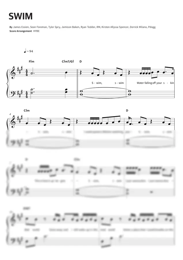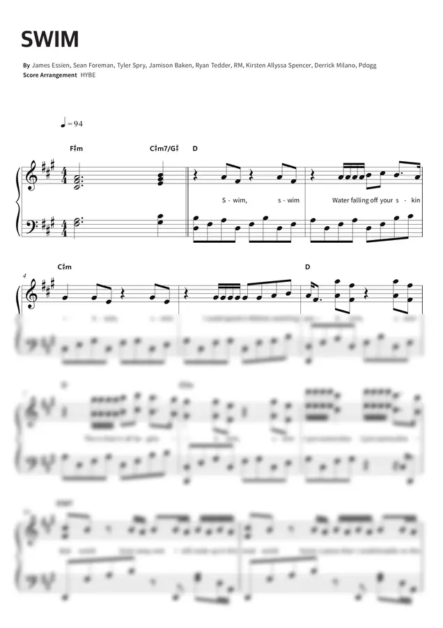 BTS의 신곡 SWIM의 초급, 중급 악보를 만나보세요.
